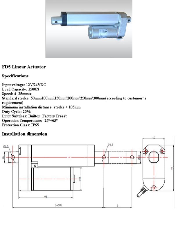 12volt FD5 Lineer Motor Aktüatör 250MM FD5-250-12
